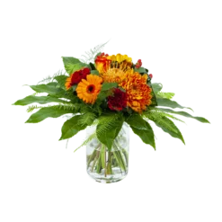 De combinatie van oranje en rode bloemen geven het bladboeket een gezellige en chique uitstaling. Een boeket dat in vrijwel elk interieur past. Bovendien geschikt voor verschillende gelegenheden. Feliciteer, bedankt of verstuur zomaar dit prachtige handgebonden boeket en verras de ontvanger! * Exclusief accessoires en vaas